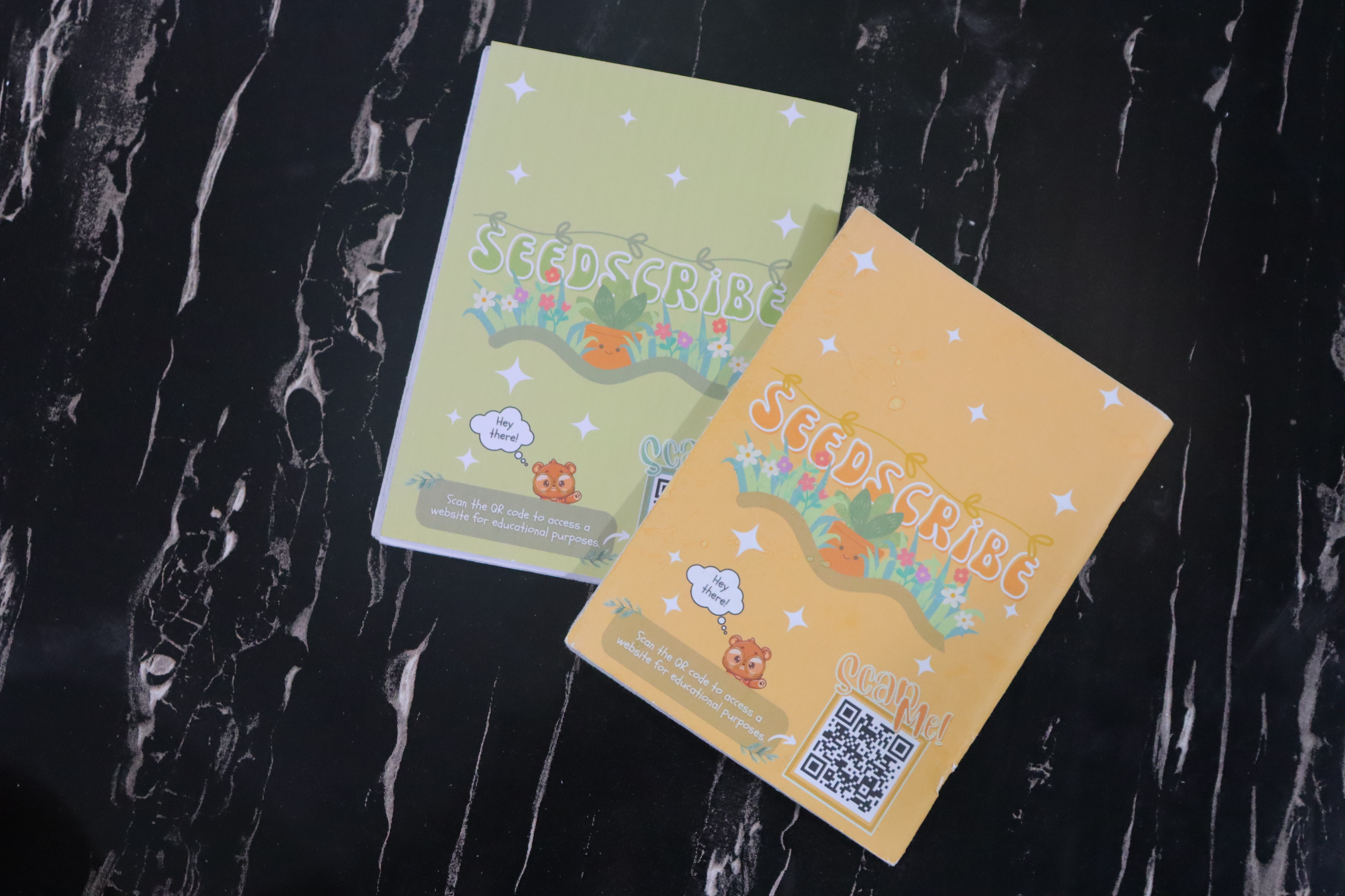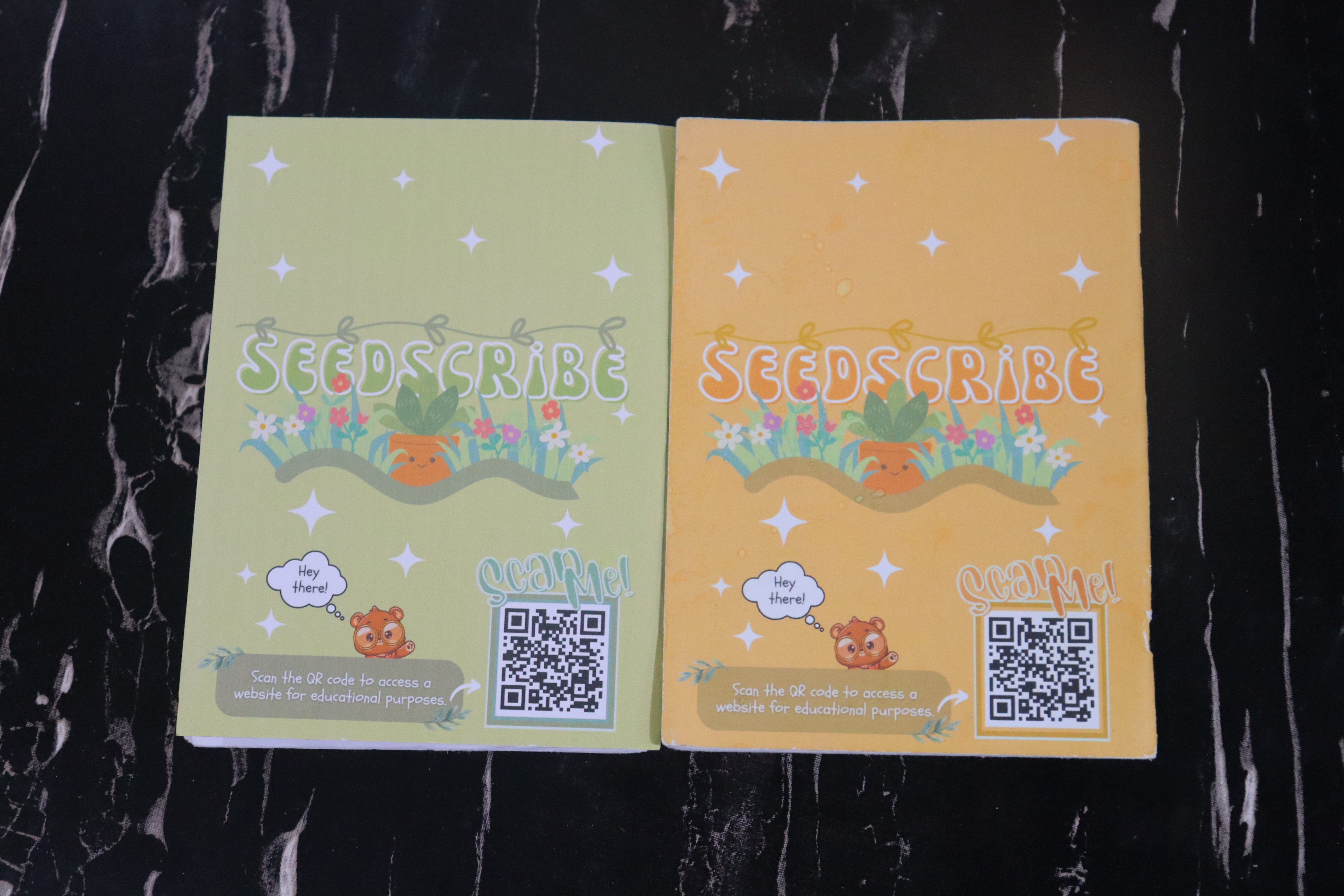 Each page of the notebook will be embedded with seeds, making the paper biodegradable and reusable. After the notebookâs pages have been used, they can be planted, contributing to the reduction of waste in the community and promoting environmental sustainability. This approach not only mitigates paper waste but also actively supports a cleaner, greener environment by encouraging the planting of trees or plants from the seeds embedded in the paper.
